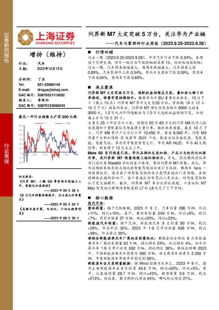 上海证券:汽车与零部件行业周报:问界新M7大定突破5万台,关注华为产业链.pdf