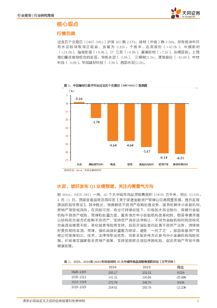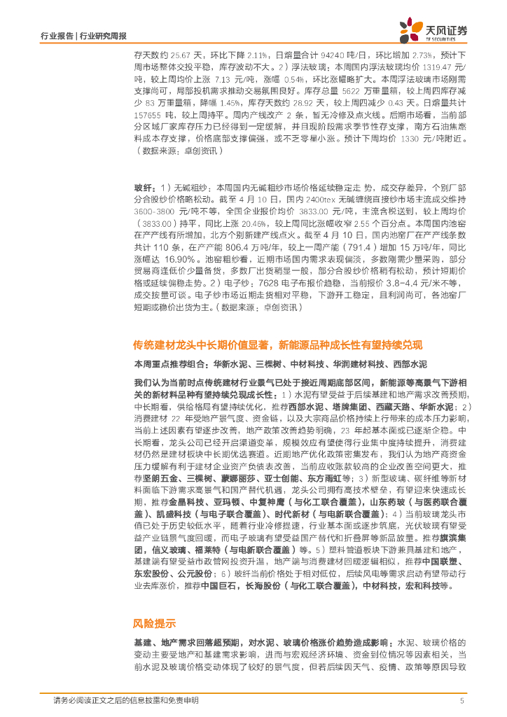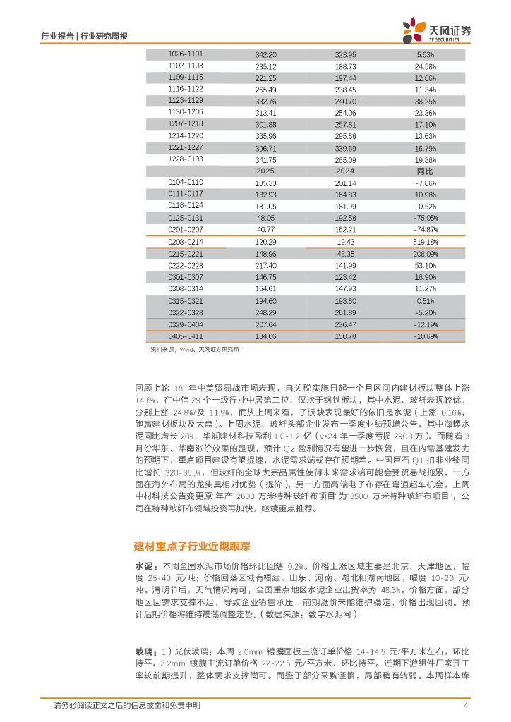 天风证券:建筑材料行业研究周报:水泥、玻纤发布Q1业绩预增,关注内需景气方向.pdf