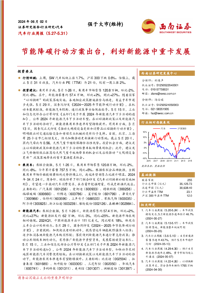 西南证券:汽车行业周报:节能降碳行动方案出台,利好新能源中重卡发展.pdf