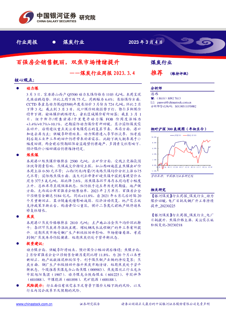 中国银河:煤炭行业周报:百强房企销售靓丽,双焦市场情绪提升.pdf