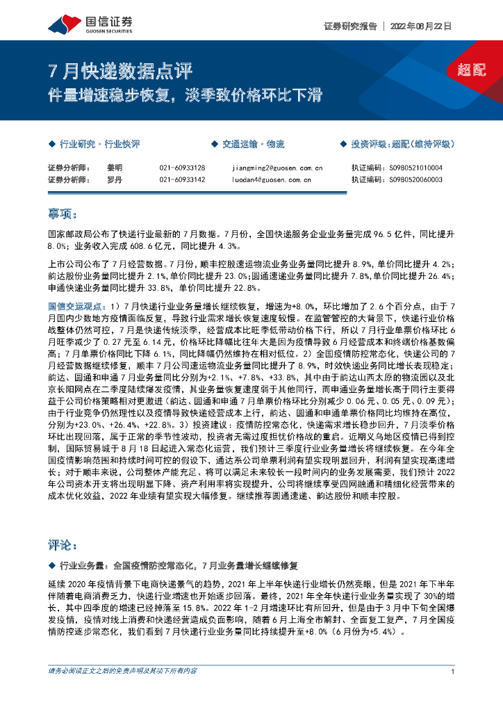 国信证券:7月快递数据点评:件量增速稳步恢复,淡季致价格环比下滑.pdf