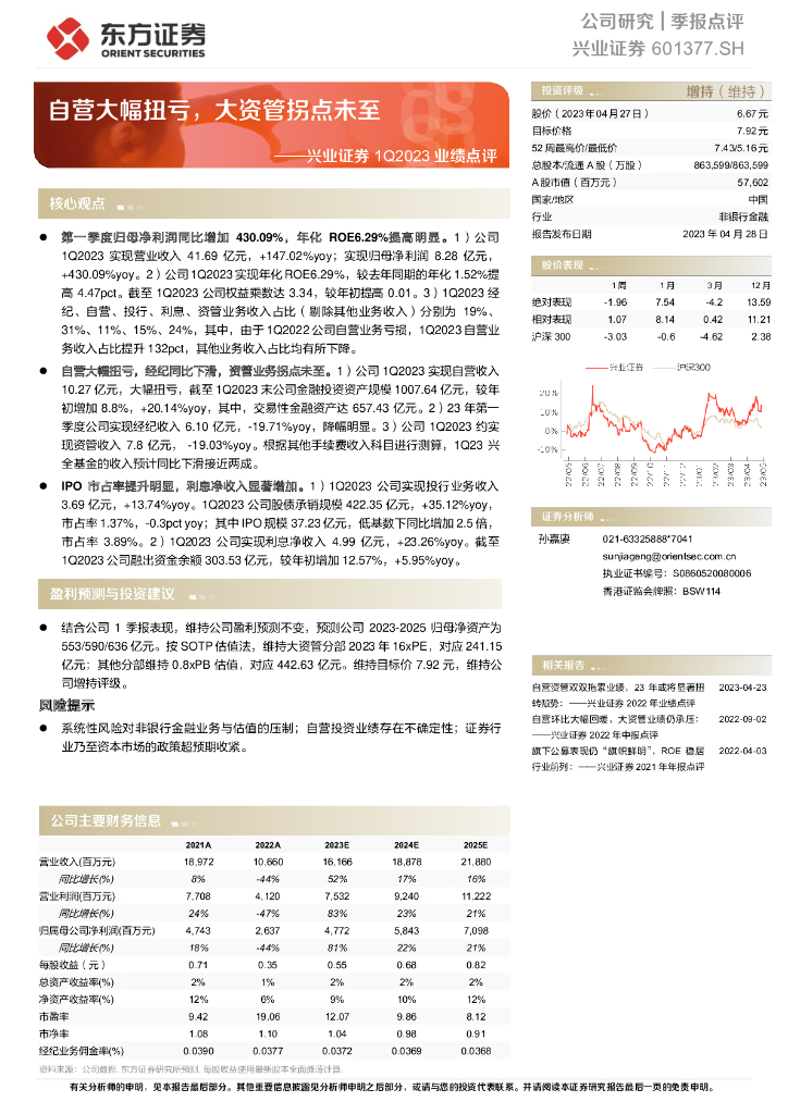 东方证券:兴业证券1Q2023业绩点评:自营大幅扭亏,大资管拐点未至.pdf