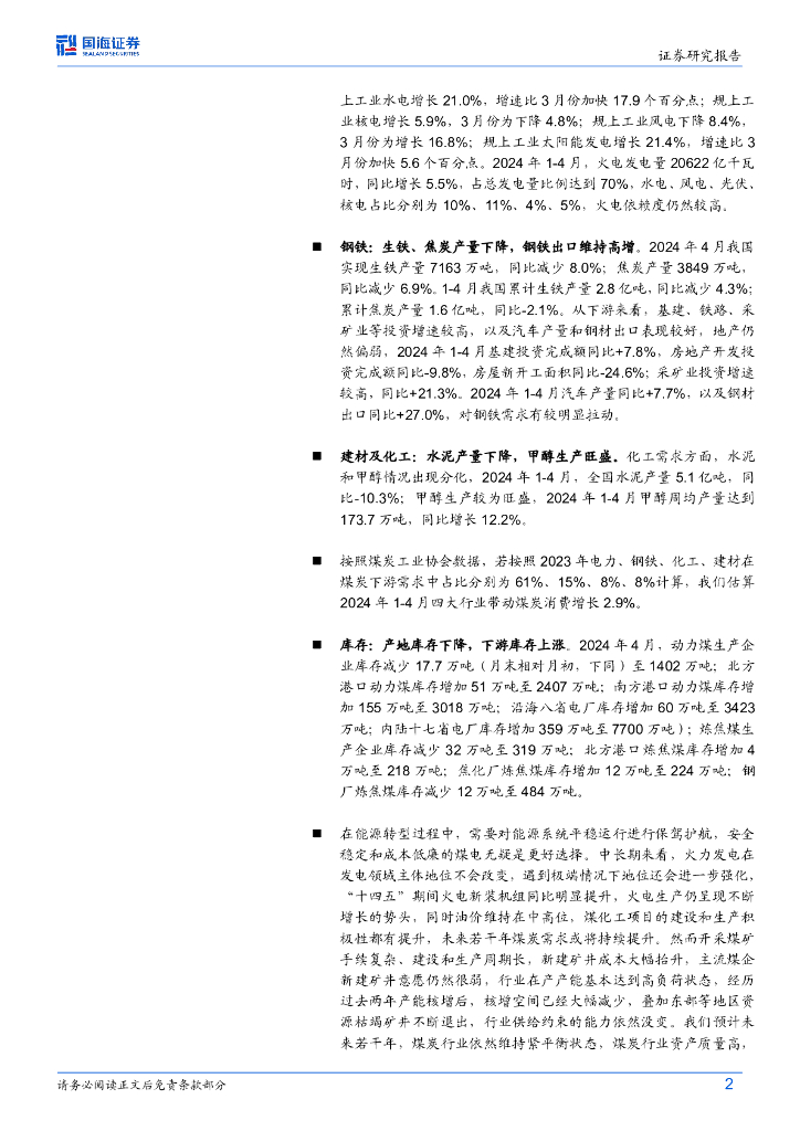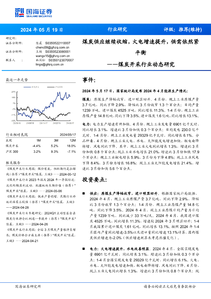 国海证券:煤炭开采行业动态研究:煤炭供应继续收缩,火电增速提升,供需依然紧平衡.pdf