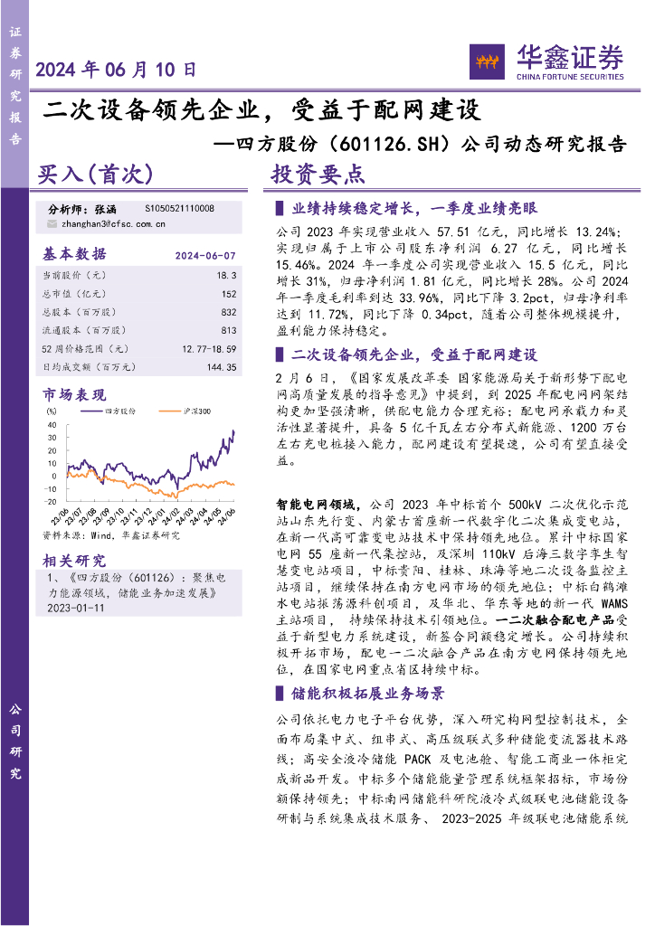 华鑫证券:四方股份(601126)-公司动态研究报告:二次设备领先企业,受益于配网建设.pdf