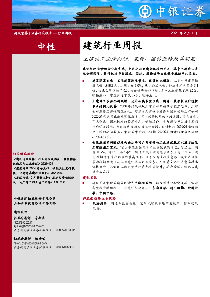 中银证券:建筑行业周报:土建施工业绩向好,装修、园林业绩改善明显.pdf