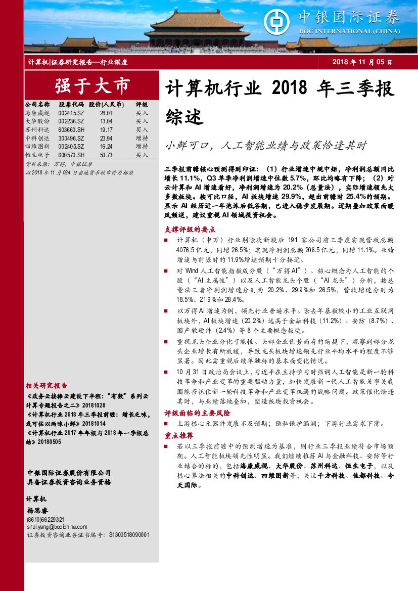 中银国际:计算机行业2018年三季报综述:小鲜可口,人工智能业绩与政策恰逢其时.pdf