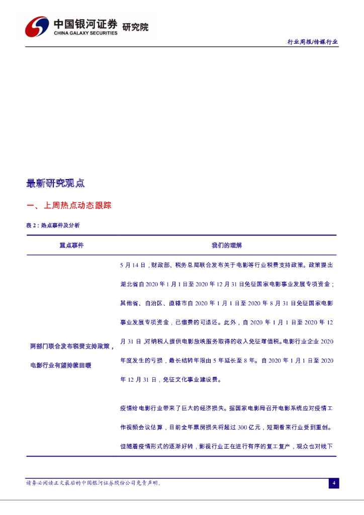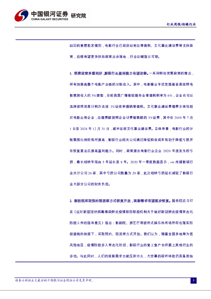 中国银河:传媒行业周报:政策支持电影业复产复工,有望推动行业复苏.pdf