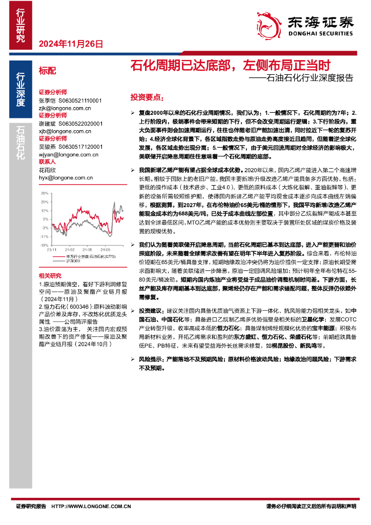 东海证券:石油石化行业深度报告:石化周期已达底部,左侧布局正当时.pdf