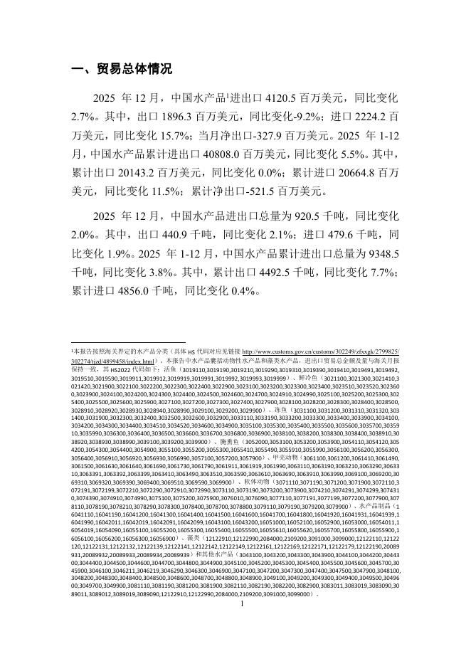 对外经济贸易大学:中国水产品贸易月度监测报告(2025年1-12月).pdf