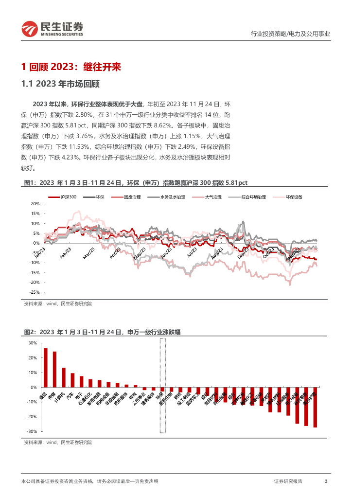 民生证券:环保行业2024年度投资策略:探寻高分红潜力,把握智慧化趋势.pdf