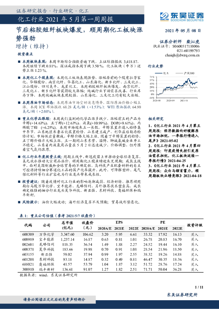 东吴证券:化工行业2021年5月第一周周报:节后粘胶短纤板块爆发,顺周期化工板块涨势强劲.pdf