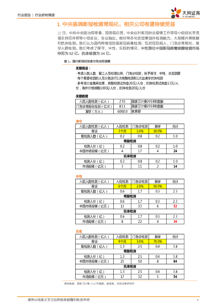 天风证券:医药生物行业研究周报:新冠检测试剂盒市场空间有多大?.pdf