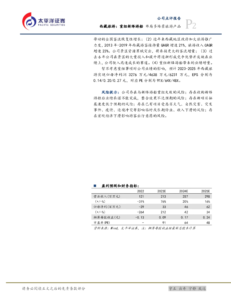 太平洋证券:西藏旅游:重组新绎游船 布局多场景旅游产品.pdf