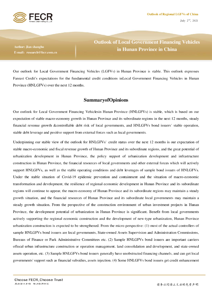 远东资信:2021年中国湖南省城投公司信用展望报告.pdf