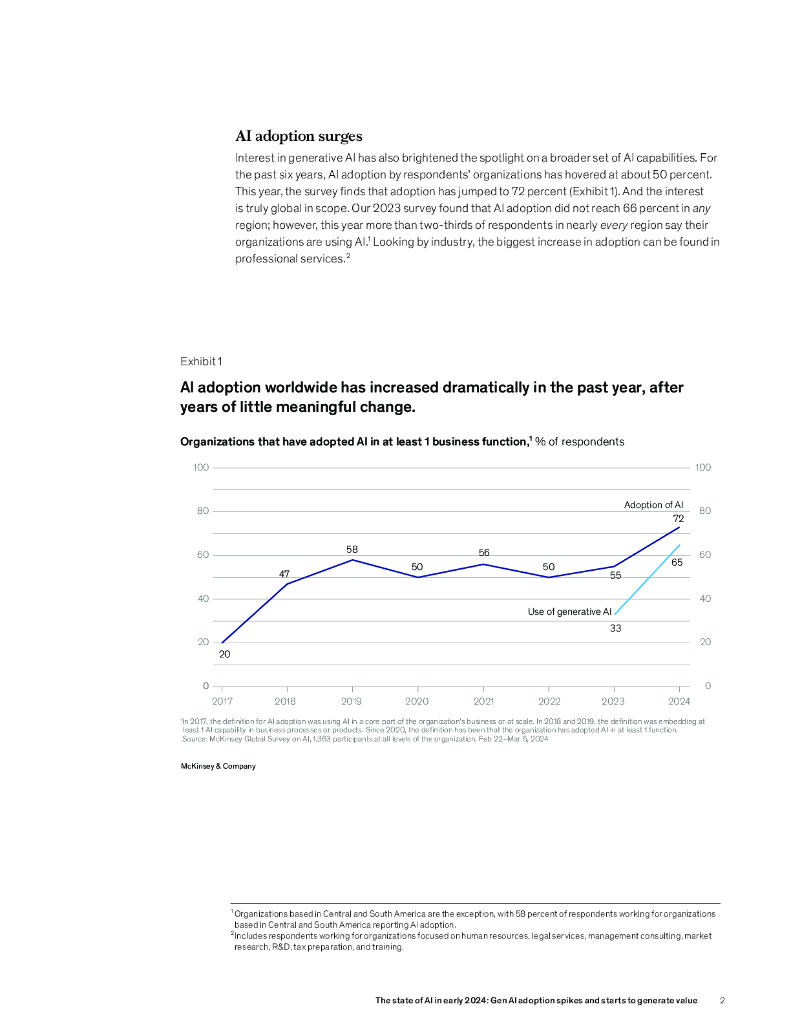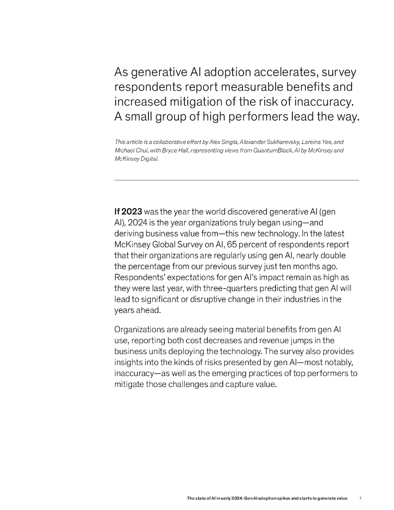 麦肯锡:2024年初人工智能的状况报告:一代人工智能的采用率飙升并开始产生价值(英文版).pdf
