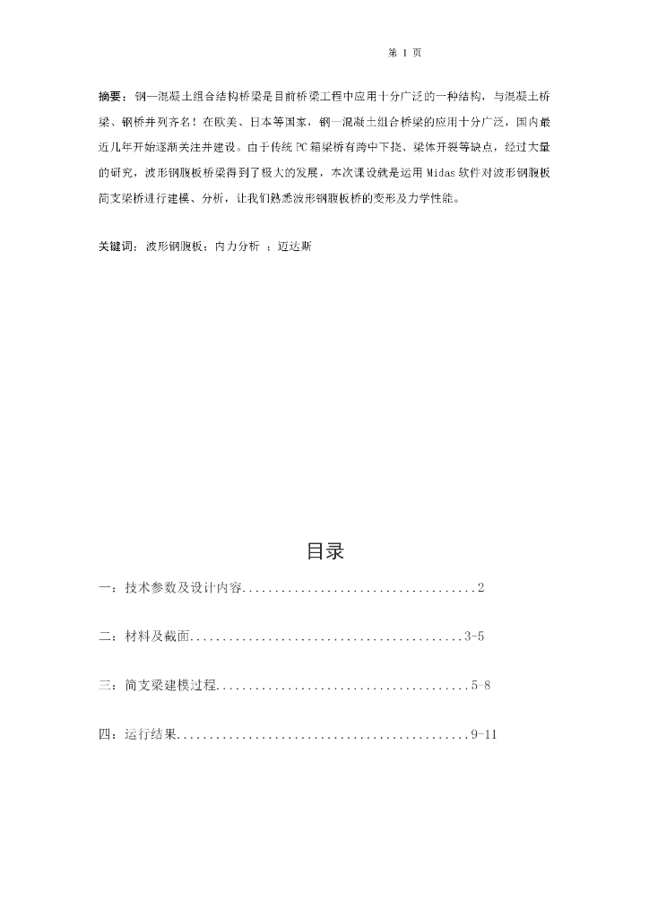 钢—混凝土组合结构桥梁课程设计(midas,波形钢腹板).doc