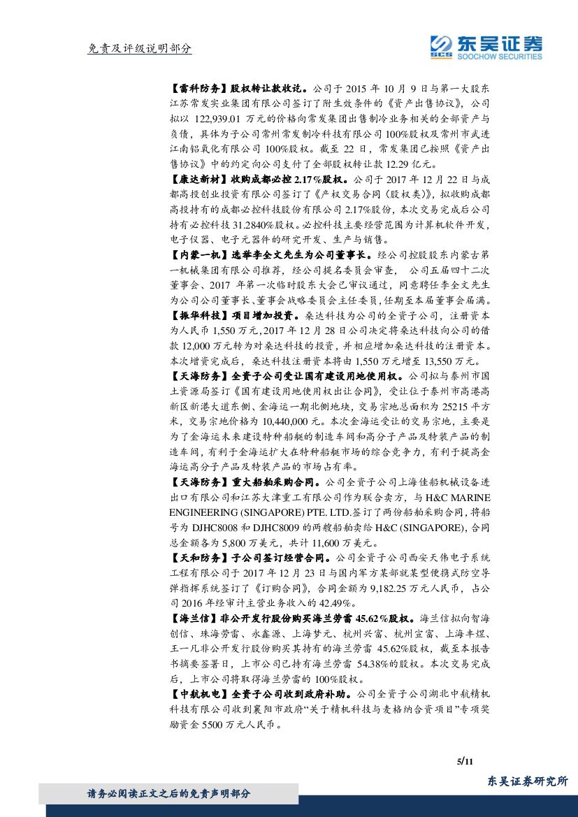 东吴证券:国防军工行业双周报:布局军工行业中高景气的细分领域,以及把握具有持续性主题性行情.pdf