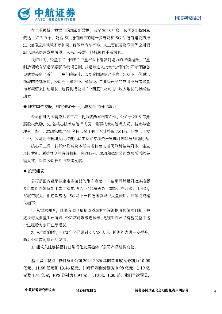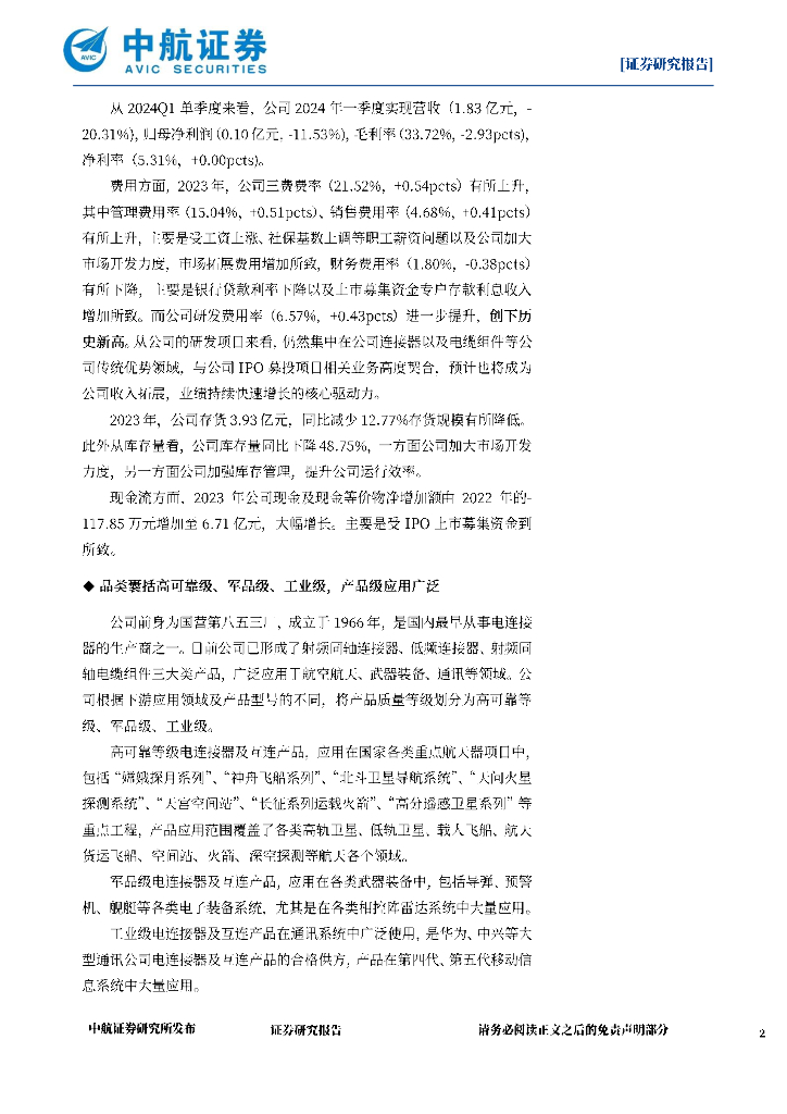 中航证券:陕西华达(301517)-2023年年报及2024年一季报点评:高可靠电连接器核心企业,受益卫星领域发展业绩可期.pdf