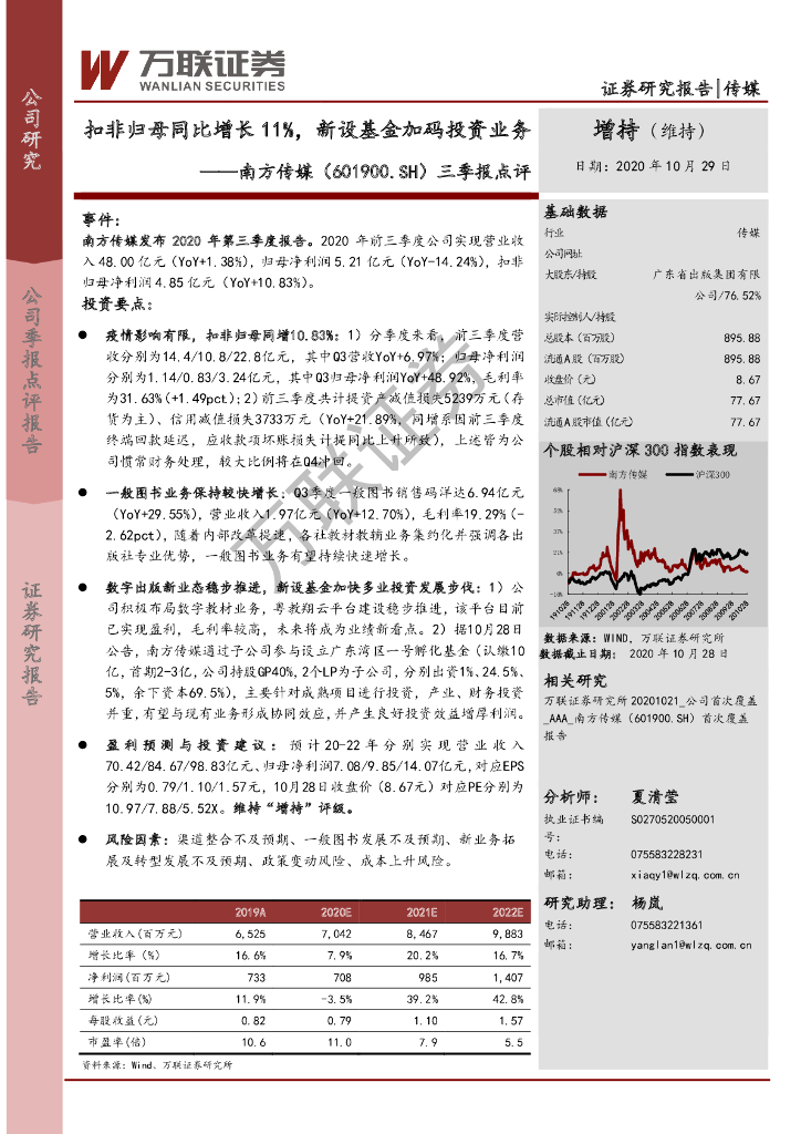 万联证券:南方传媒(601900)-三季报点评:扣非归母同比增长11%,新设基金加码投资业务.pdf