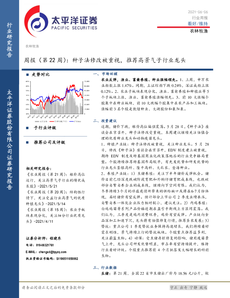 太平洋证券:农林牧渔周报(第22周):种子法修改被重视,推荐高景气子行业龙头.pdf