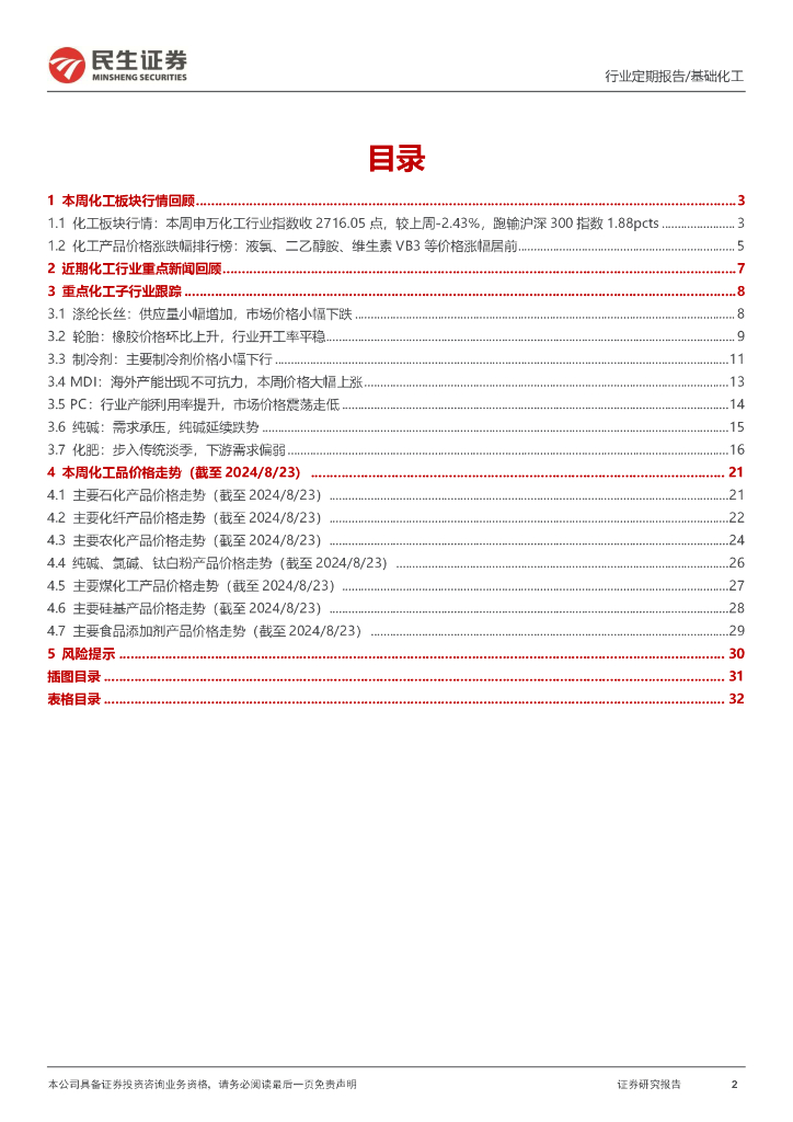 民生证券:化工行业周报(-):MDI价格上涨,PC行业开工率回升.pdf