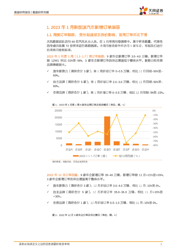 天风证券:新能源汽车景气度跟踪:M1W1补贴退坡叠加部分车企涨价,首周订单大幅回落.pdf
