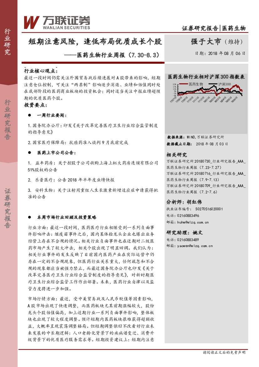 万联证券:医药生物行业周报:短期注意风险,逢低布局优质成长个股.pdf