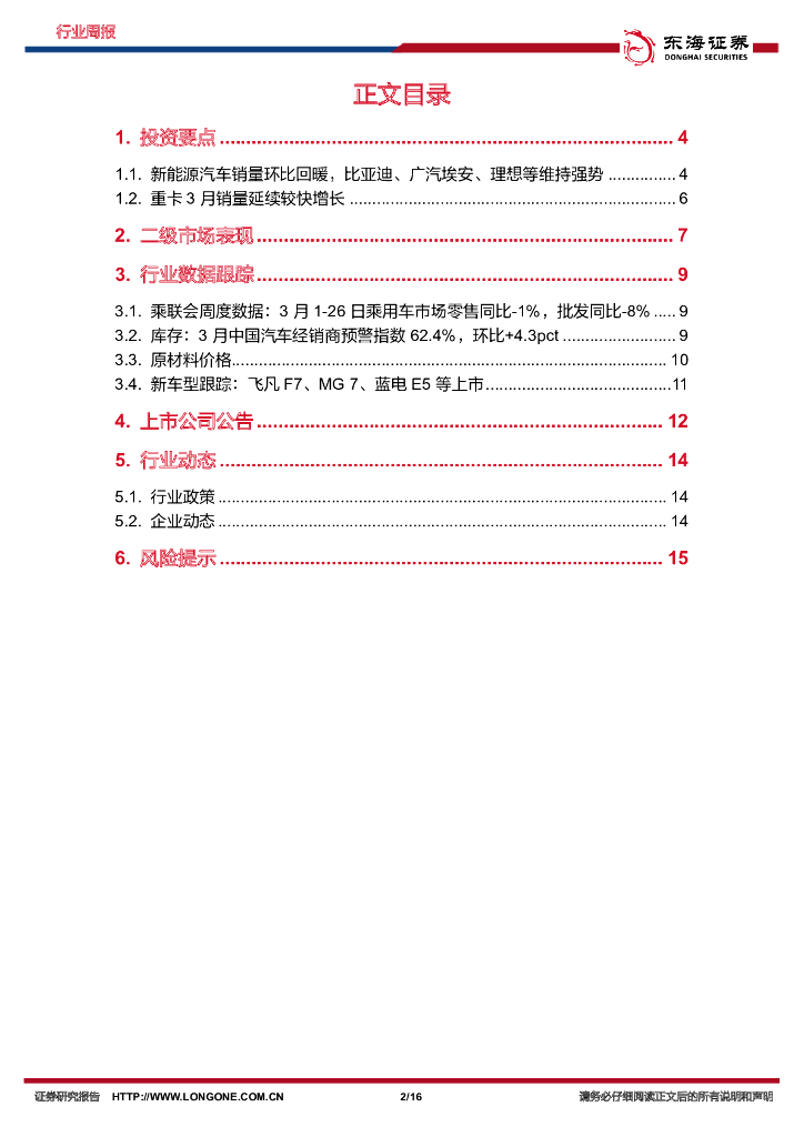 东海证券:汽车行业周报:3月新能源车销量回暖;重卡销量同比+26%.pdf