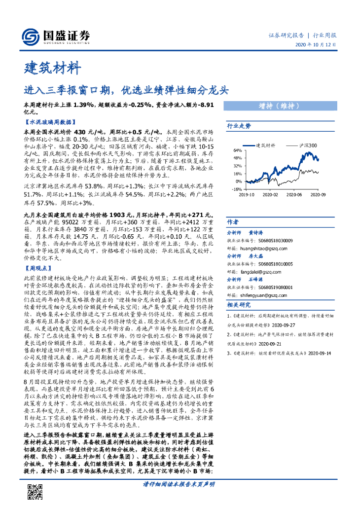 国盛证券:建筑材料行业周报:进入三季报窗口期,优选业绩弹性细分龙头.pdf