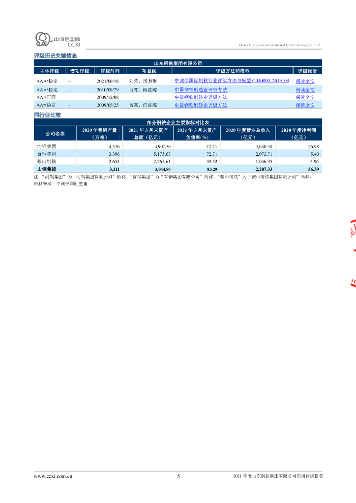 中诚信:2021年度山东钢铁集团有限公司信用评级报告.pdf