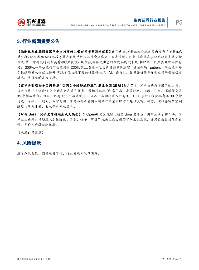 东兴证券:传媒互联网&通信行业:浪潮信息率先支持英特尔最新至强处理器,快手发布视频生成大模型.pdf