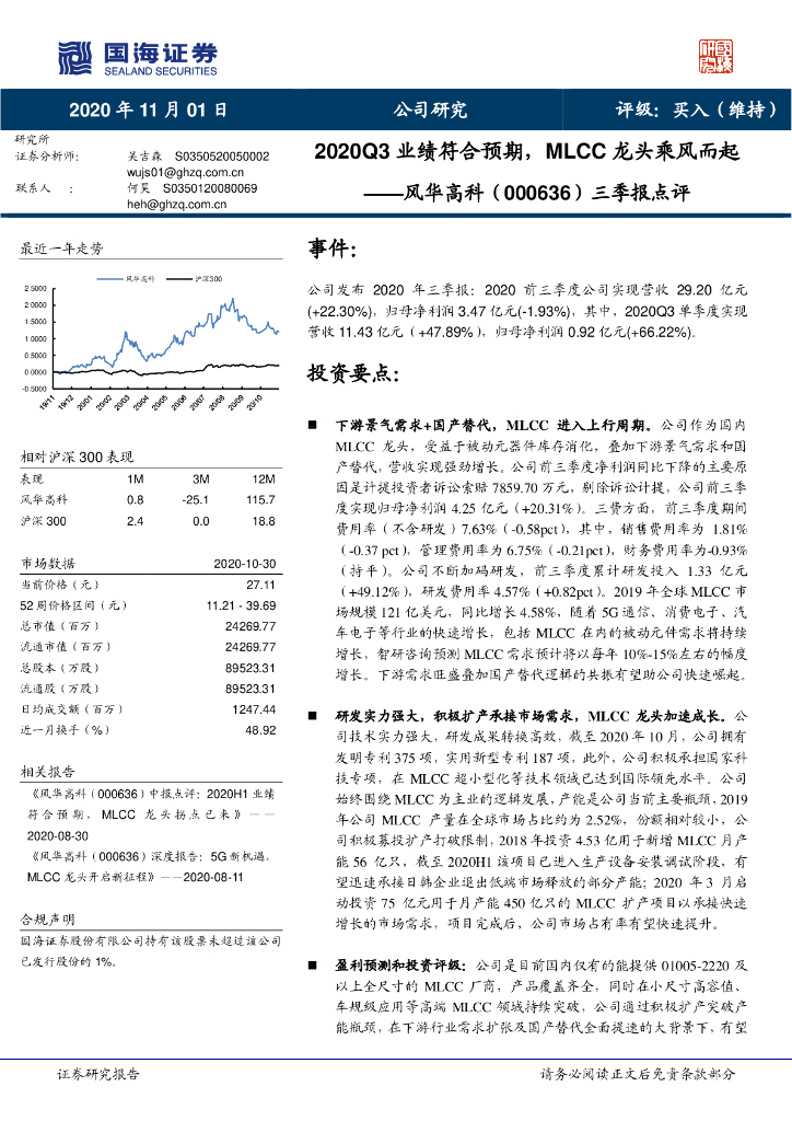 国海证券:风华高科(000636)-三季报点评:2020Q3业绩符合预期,MLCC龙头乘风而起.pdf