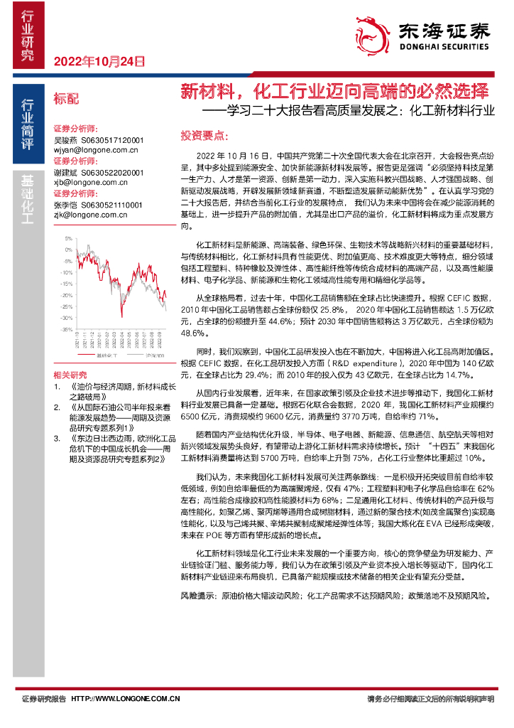 东海证券:学习二十大报告看高质量发展之:化工新材料行业-新材料,化工行业迈向高端的必然选择.pdf