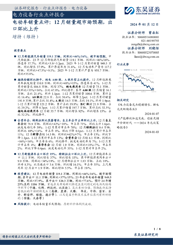 东吴证券:电动车销量点评:12月销量超市场预期,出口环比上升.pdf