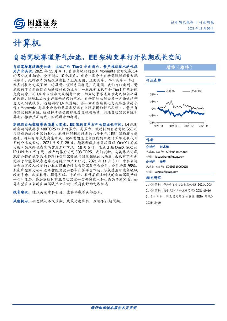国盛证券:计算机行业周报:自动驾驶赛道景气加速,EE架构变革打开长期成长空间.pdf