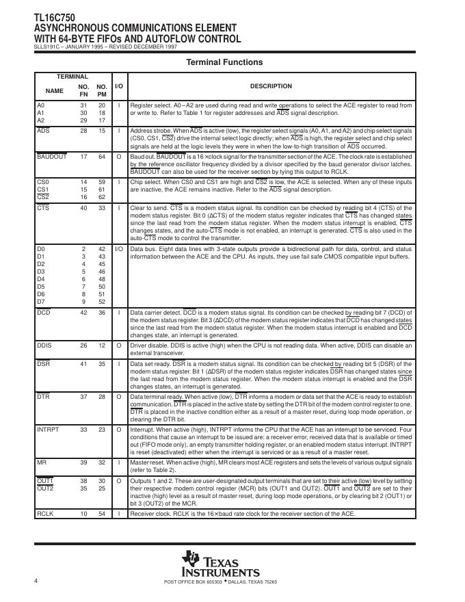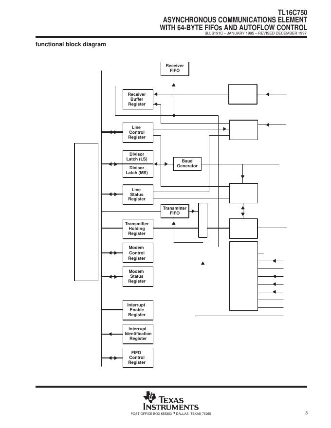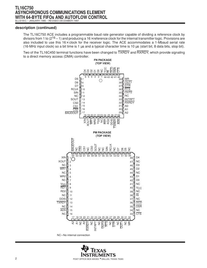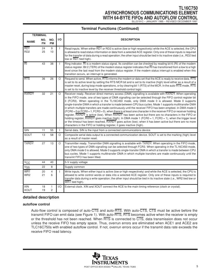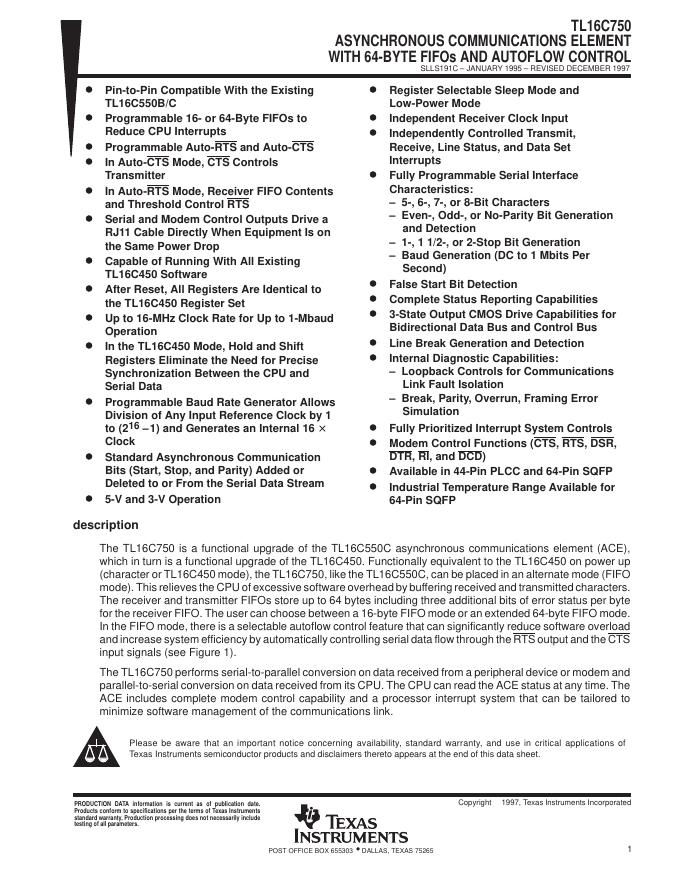 texas instruments TL16C750 ASYNCHRONOUS COMMUNICATIONS ELEMENT WITH 64-BYTE FIFOs AND AUTOFLOW CONTROL 数据手册(1).pdf