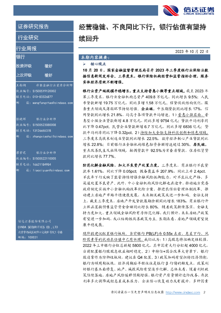 信达证券:银行行业周报:经营稳健、不良同比下行,银行估值有望持续回升.pdf