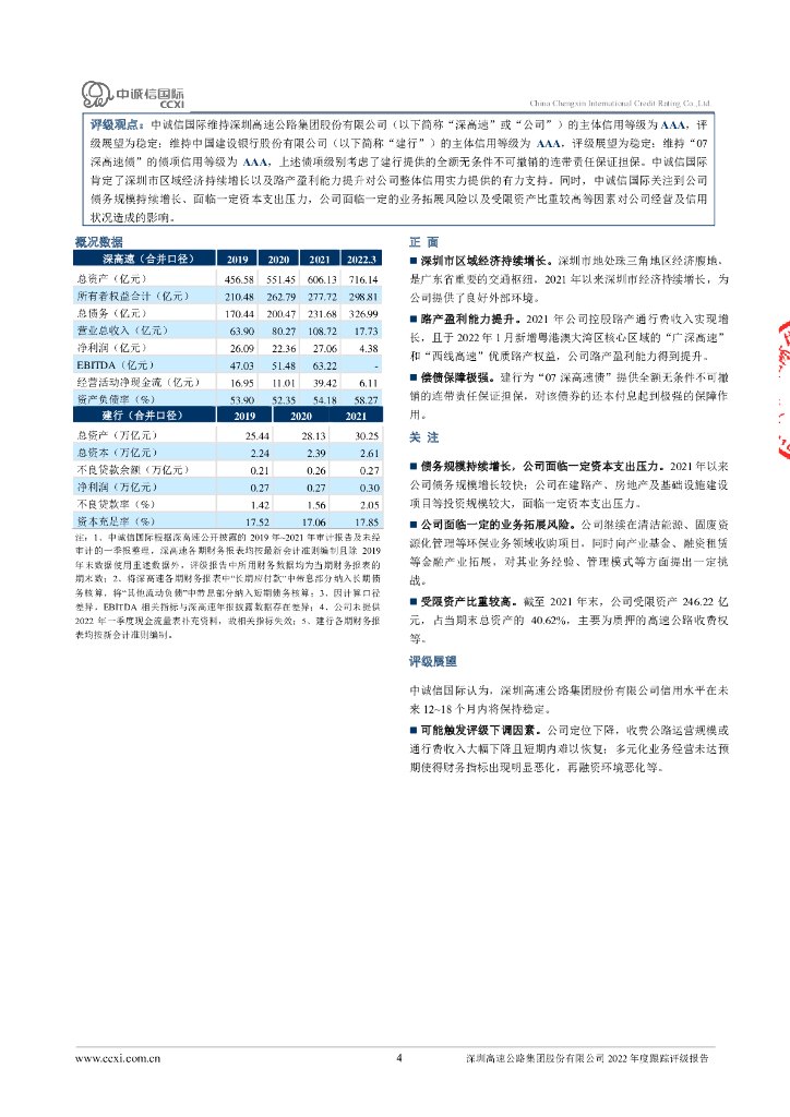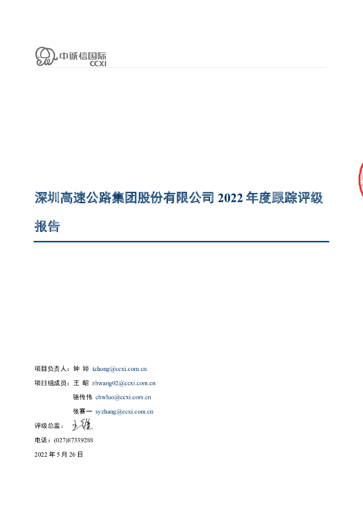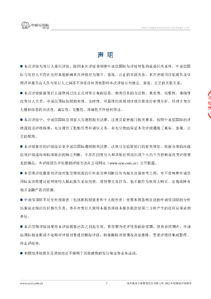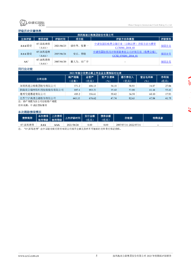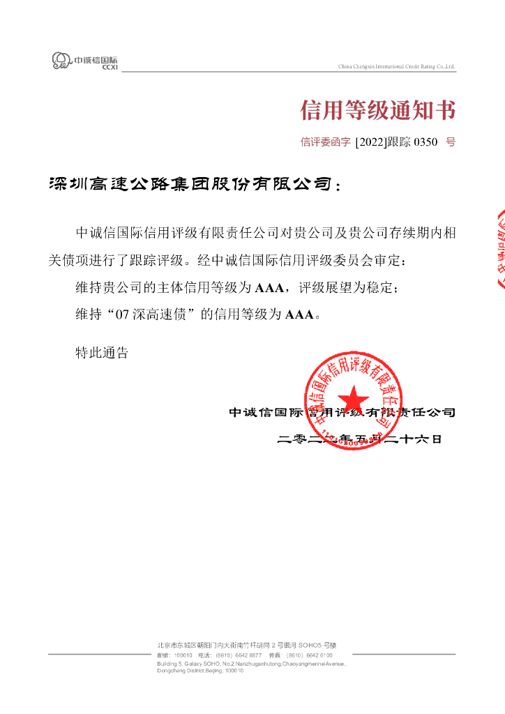 中诚信:深圳高速公路集团股份有限公司2022年度跟踪评级报告.pdf