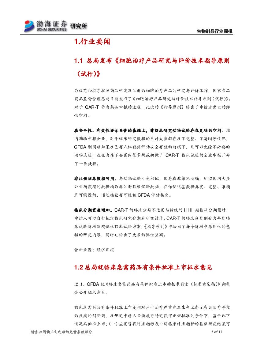渤海证券:生物制品行业周报:总局发布细胞治疗产品研究与评价技术指导原则.pdf