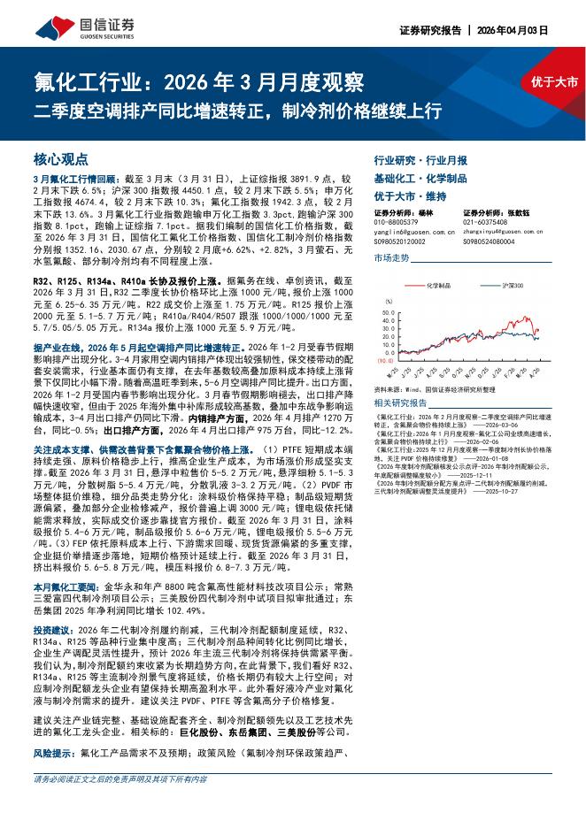 国信证券:氟化工行业:2026年3月月度观察:二季度空调排产同比增速转正,制冷剂价格继续上行.pdf