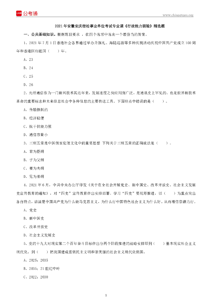 2021年安徽安庆宿松事业单位考试专业课《行政能力测验》精选题.pdf