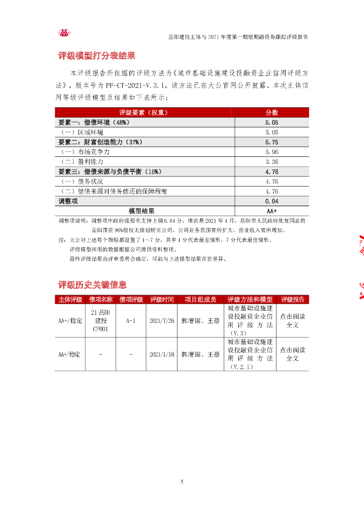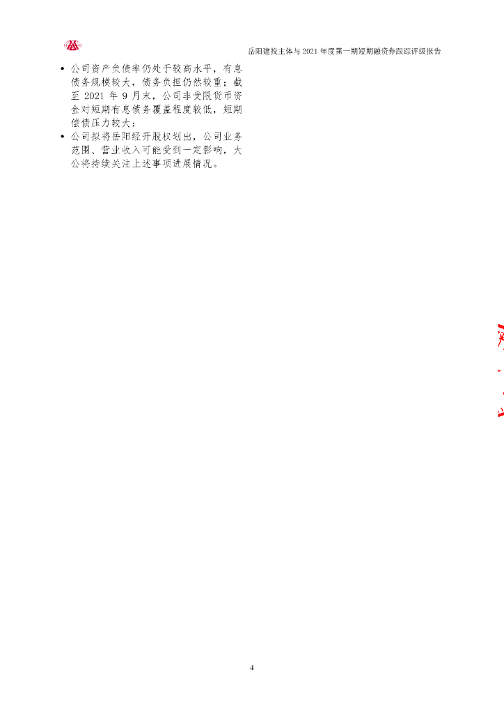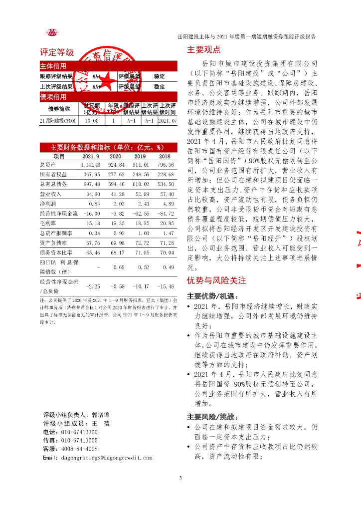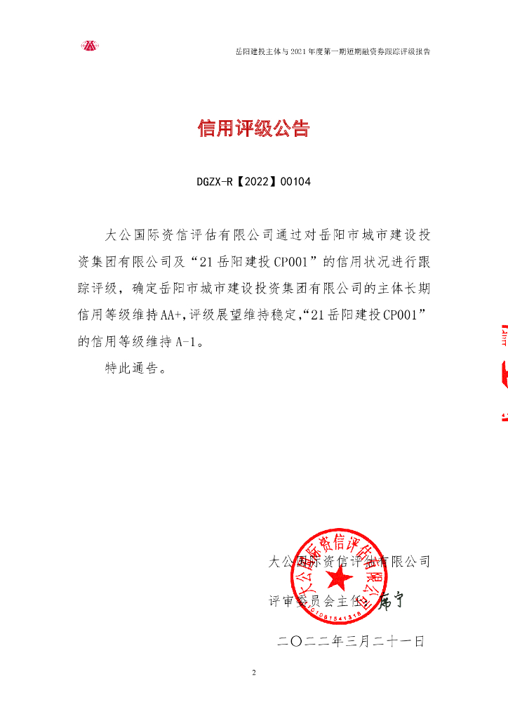 大公:岳阳市城市建设投资集团有限公司主体与2021年度第一期短期融资券跟踪评级报告.pdf