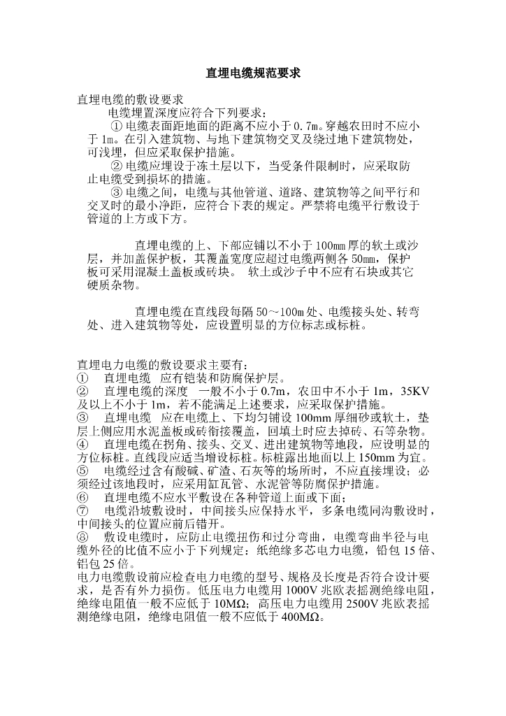 电缆埋地穿管规范要求(WORD).doc