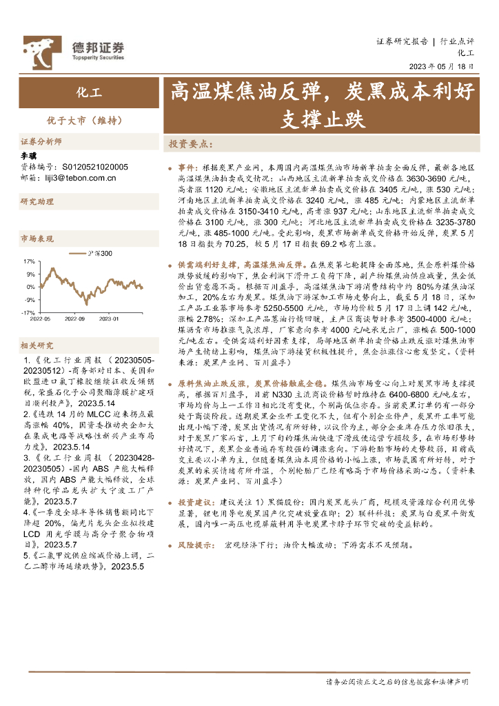 德邦证券:化工:高温煤焦油反弹,炭黑成本利好支撑止跌.pdf