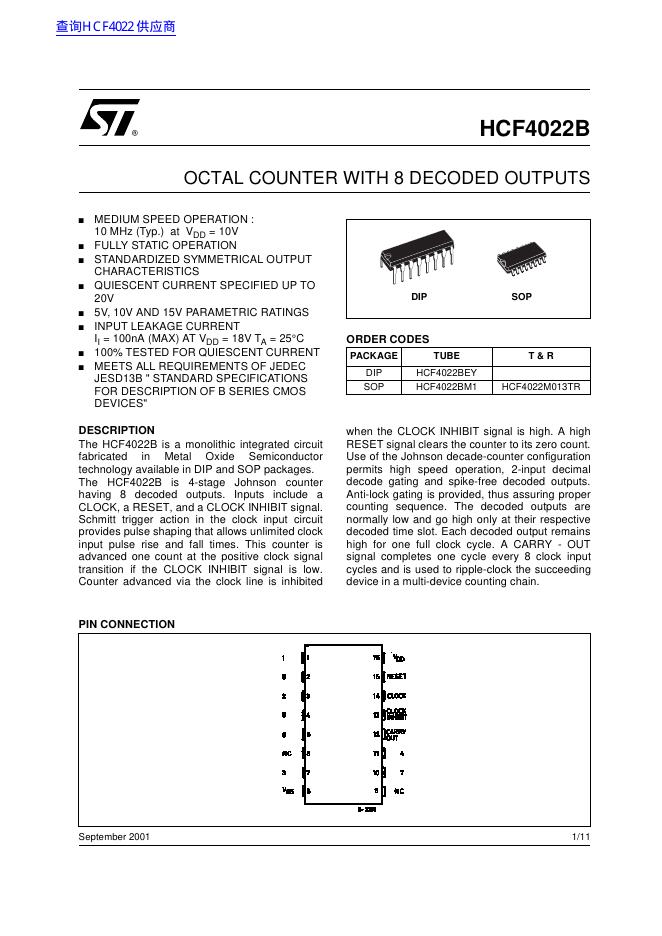 ST HCF4022B 数据手册.pdf