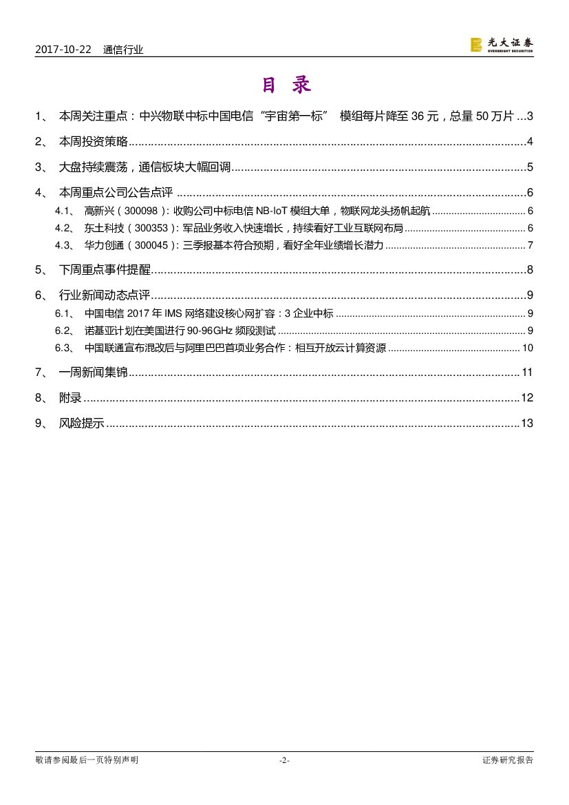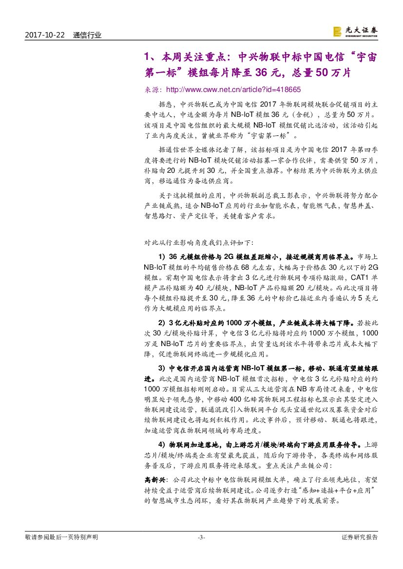 光大证券:通信行业周报:NB-IoT模组首次招标,物联网应用加速落地.pdf