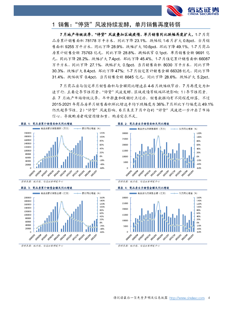信达证券:2022年1-7月统计局房地产数据点评:销售与投资再度转弱,政策发力及纾困正当其时.pdf