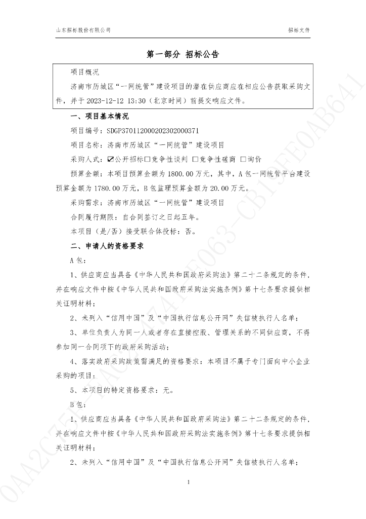 一网统管-济南市历城区“一网统管”建设项目招标文件.pdf
