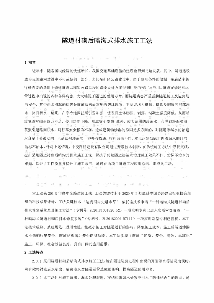 隧道衬砌后暗沟式排水施工工法10页.pdf