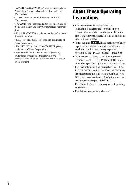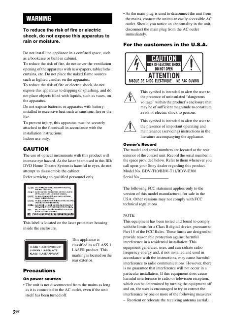 索尼 BDV-T10/T11/E300 BD/DVD Home Theatre System 操作手册.pdf